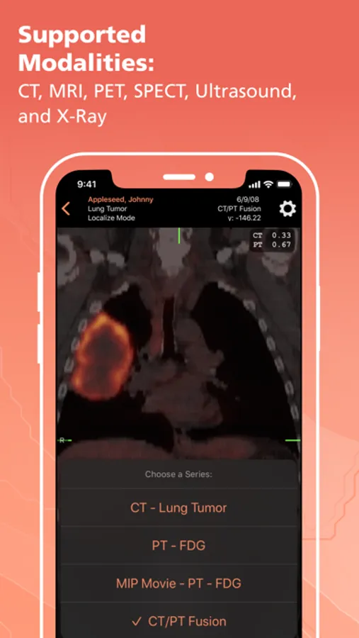 - View standard medical images like SPECT, PET, CT, MRI, x-ray, and ultrasound