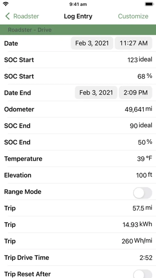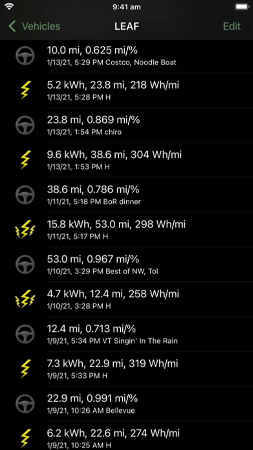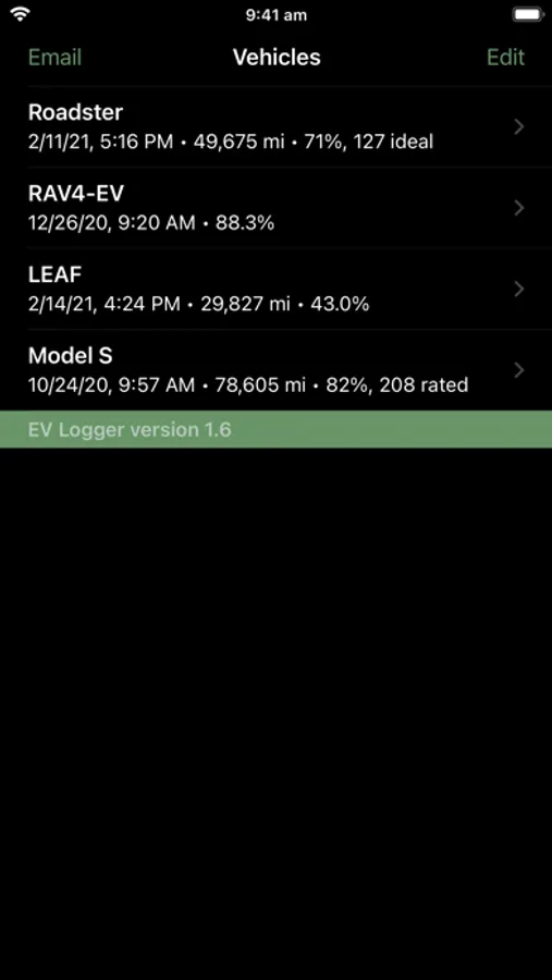 EV Logger gives electric vehicle owners the ability to record energy use information to track range and energy efficiency in much the same way that a gas car owner might track gas mileage.