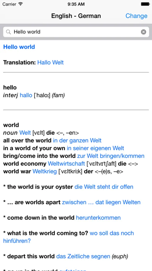 Learn the translation and pronunciation of words in German with the German Dictionary. It's perfect for students!