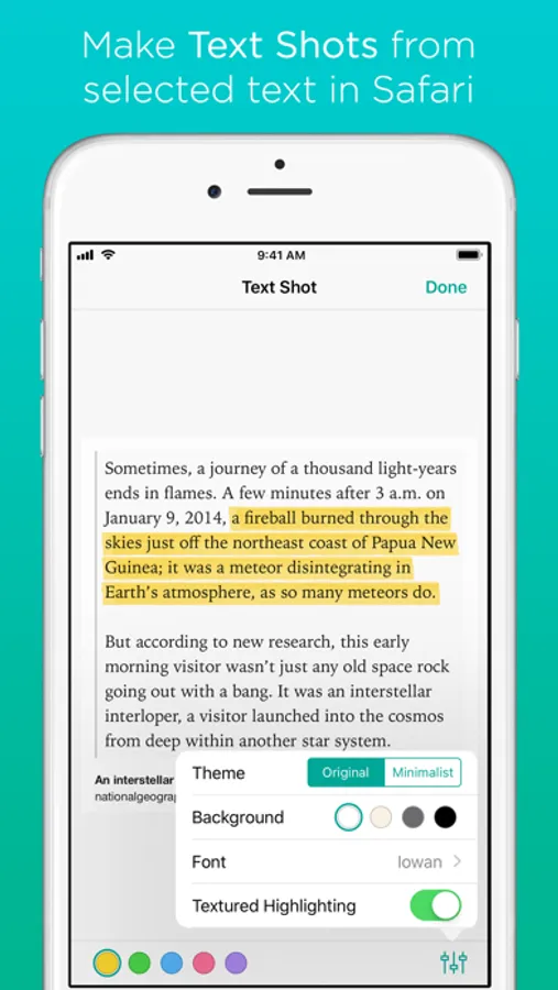 • Share selected text in Safari as a text shot image.
