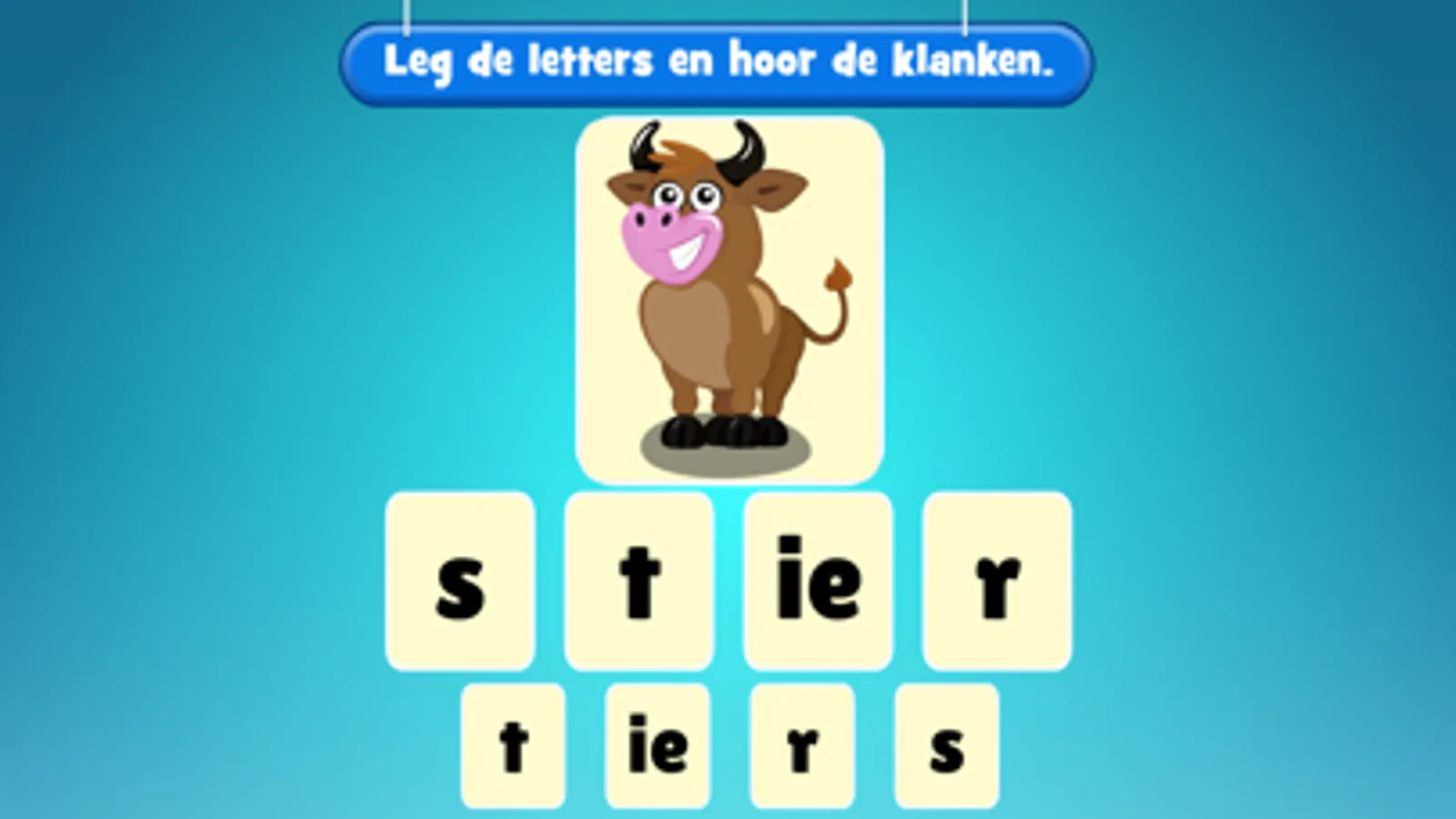 De app laat de juiste klanken van de letters en lettergroepen (oe, aa) horen.