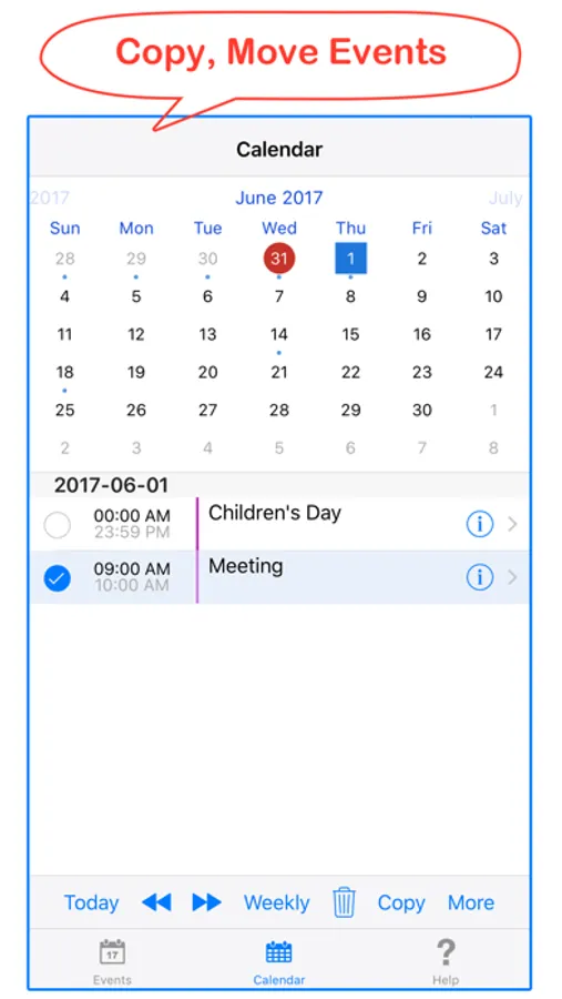 Sync with the iPhone Calendar. Events will be saved and viewable in iPhone's Calendar.
