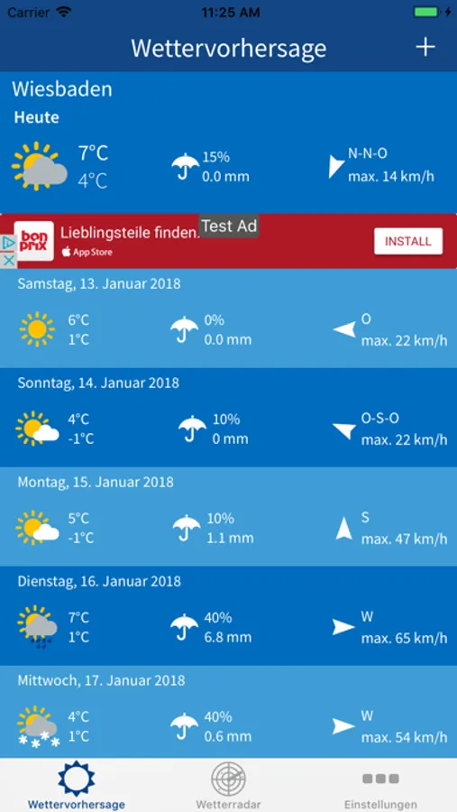 Die kostenfreie wetter.net Weather App erstrahlt im frischen Design. Auf sehr übersichtliche Art und Weise finden Sie bei uns weltweite Wetterprognosen für den aktuellen und die kommenden sieben Tage. Dabei werden die ersten 48 Stunden in einstündigen Prognoseschritten dargestellt. Ab dem dritten Tag beträgt die zeitliche Auflösung drei Stunden. In der App besteht die Möglichkeit via Ortung oder Eingabe eines Stadtnamens persönliche Favoriten hinzuzufügen. In Deutschland, Österreich und der Schweiz können Sie Ihren Wunschort auch über die Eingabe einer Postleitzahl hinzufügen. Sämtliche Wetterprognosen werden dabei von unserem eigenen regionalen Wettermodell mit einer räumlichen Auflösung von 1 km erstellt.