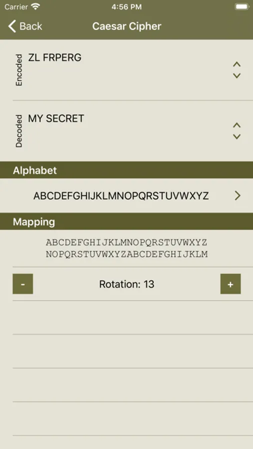 - Caesar Cipher (ROT-N), ROT-5, -13, -18, -47
