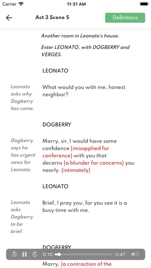 Shakespeare's Much Ado About Nothing with full "radio theater" audio production. Read the text while listening to the play.