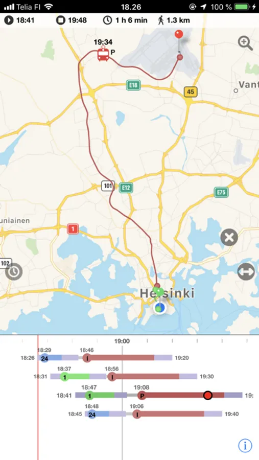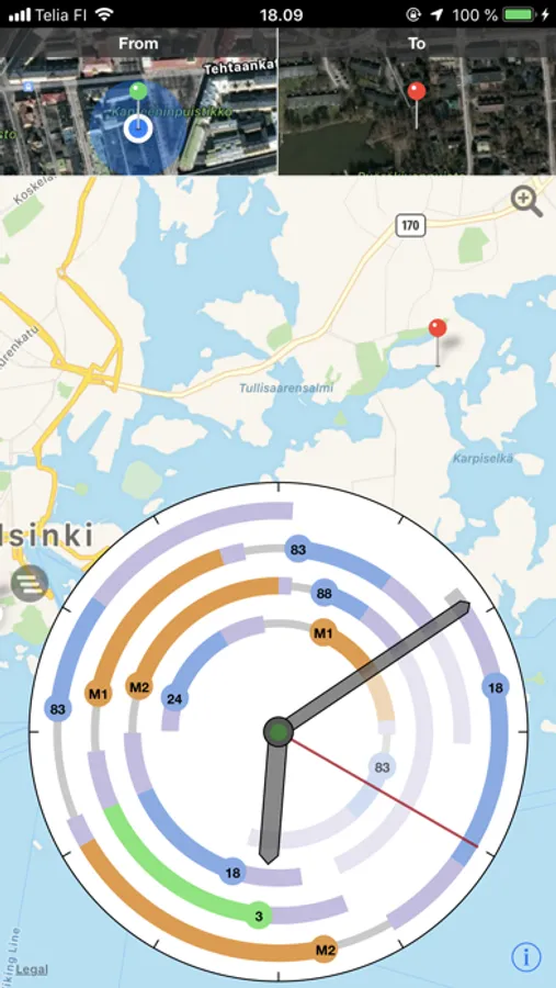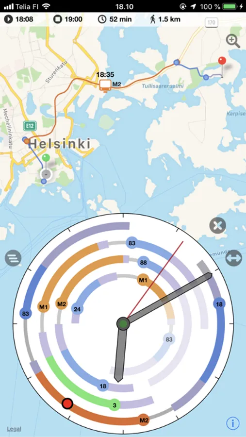 • View your route alternatives either on a clever clock-face diagram of surprising clarity, or on a classic timeline.