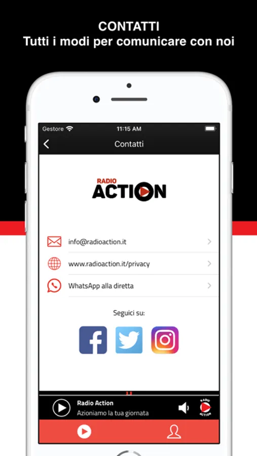 Radio Action è una All Music Station, un formato semplice, vincente ed inconfondibile grazie ai suoi successi di ieri e di oggi in rotazione 24h su 24, 365 giorni l’anno, facilmente riconoscibili ed identificati dall’inconfondibile claim: “una hit del passato, una hit del presente”.
