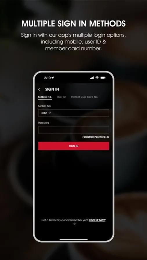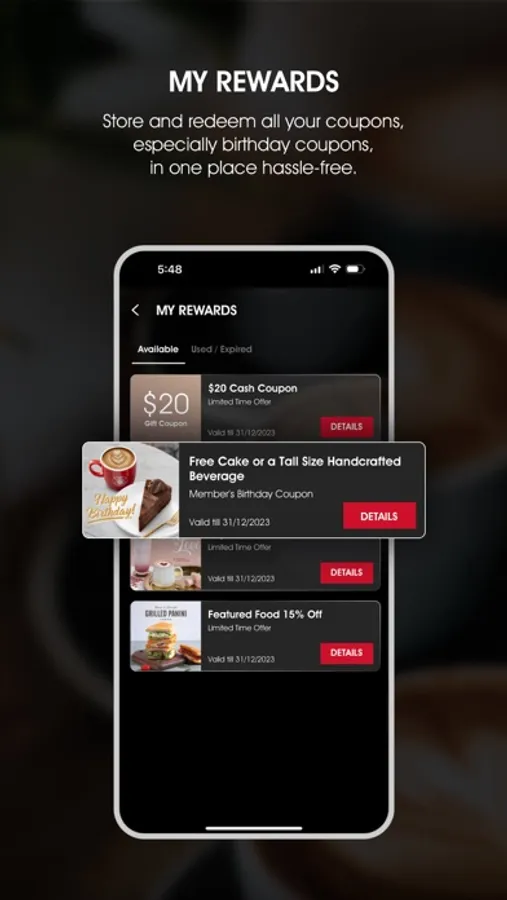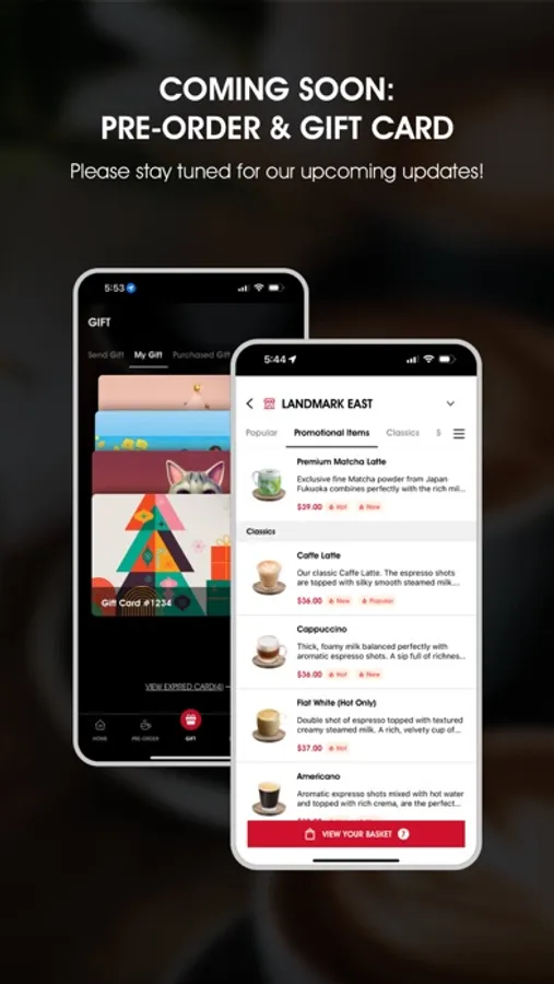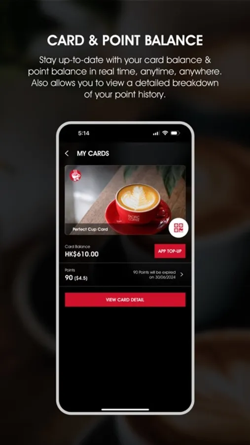 Download our latest mobile app with brand new design that is easily for members to review member profile, transaction history, points balance and find nearby stores to enjoy your perfect cup!