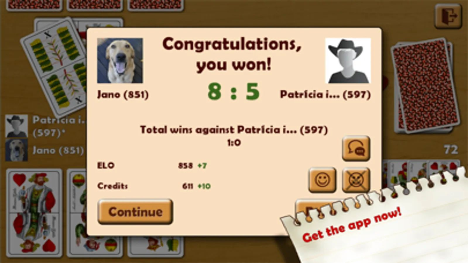Download the Schnopsn app and play “Schnapsen” against thousands of active players or the computer.