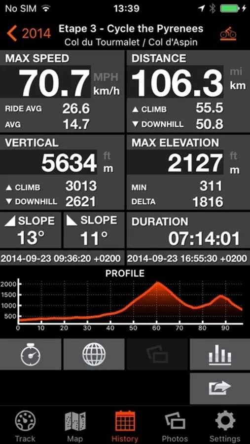 - Share rides: GPX, KML, Facebook, Google Earth.
