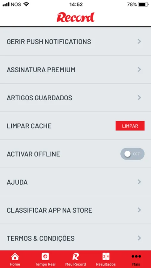 √ “Meu Record” para selecionar e aceder mais rapidamente aos conteúdos do seu interesse