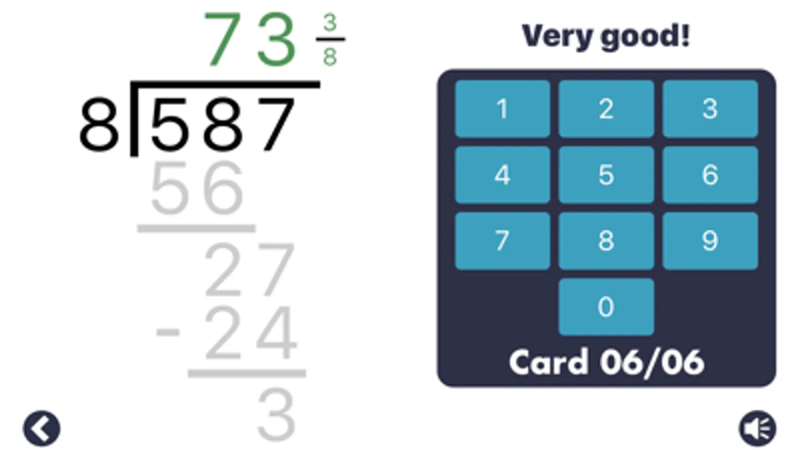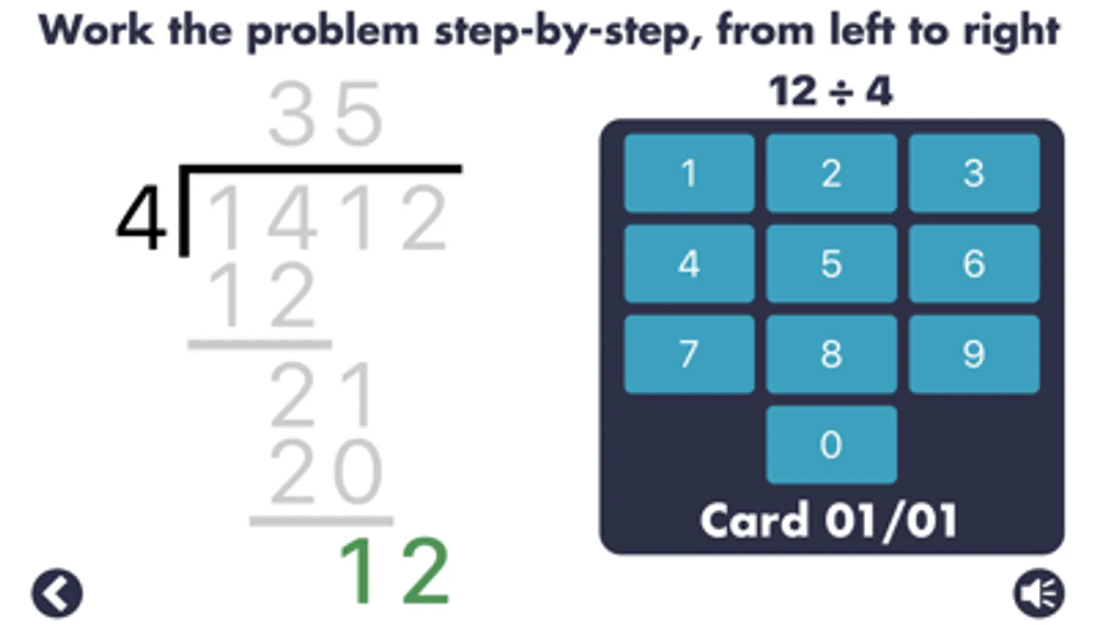 "This app makes it possible to take a step by step approach to solving long division problems - for students, it replicates the idea of showing your work that usually happens with pencil and paper but also helps guide you to the right answer along the way." - Mrs. Green, 4th grade teacher