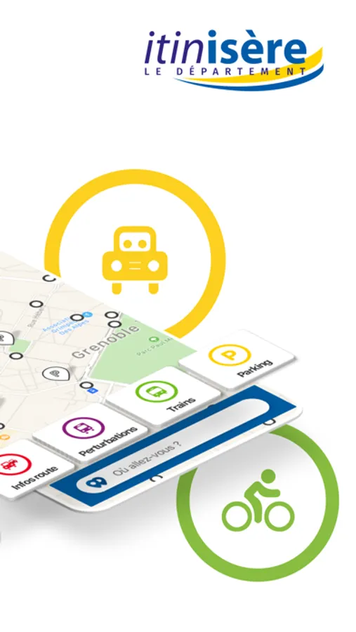 itinisère rassemble en une seule application les informations théoriques et temps réel sur tous les modes de transport disponibles dans le département : vélo, bus, car, tram, train, avion, trafic routier, covoiturage ….