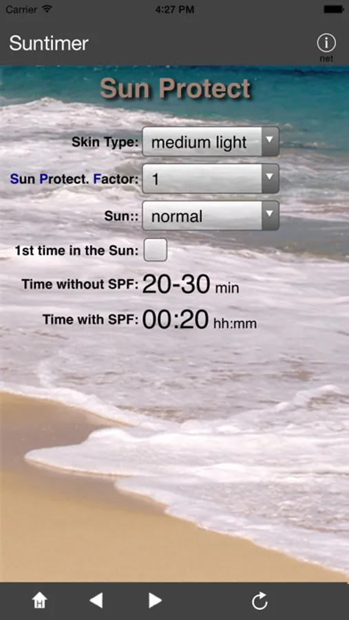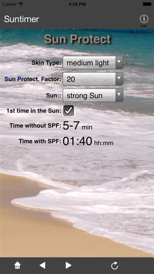 The Suntimer helps you calculating the time, that you can lay in the sun without harm. Thereby these statements are only indications.