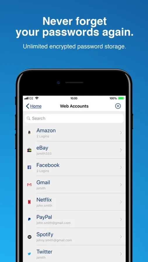 - You'll need to remember only one password — your master password to unlock the app.