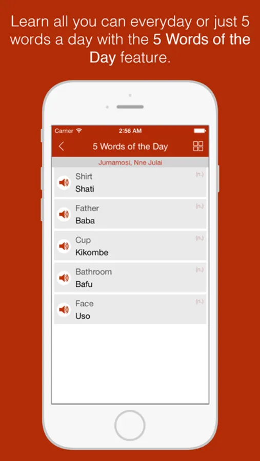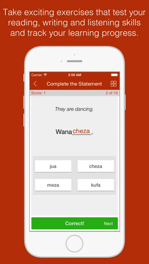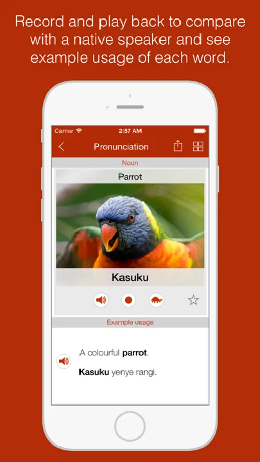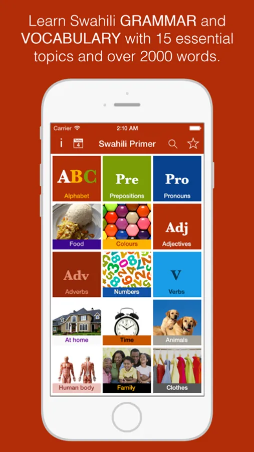 You will learn the Swahili grammar rules and tips with a lot of example words and sentences under all the 15 topics. Each topic presents you with a list of words and example sentences with audio. This is to help you grasp the pronunciation. Play and listen to each one and record and compare with the native pronunciations.