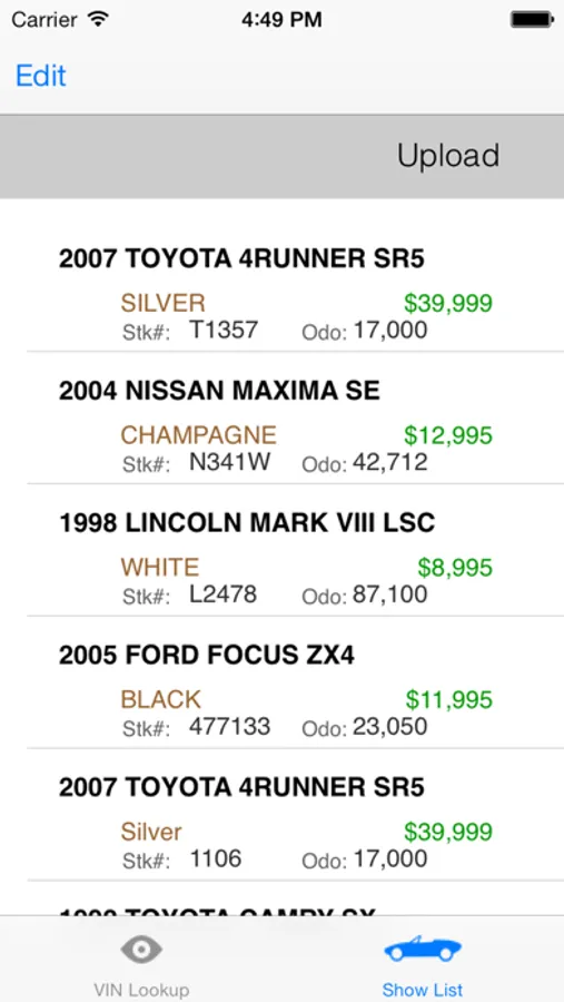 AutoPlus quickly authenticates and then decodes the VIN (serial number) and displays rich details including year, make, model, engine, equipment and optional accessory items and retrieves EPA city and highway mileage values. Data can be collected for any number of vehicles and then uploaded to the AutoPlus servers where it can be automatically downloaded into the AutoPlus Deluxe Window Sticker Software where photos can be linked, data can be edited, window sticker labels and FTC Buyers Guide labels can be printed, and data and photos can be distributed to various web services and shared with other applications.