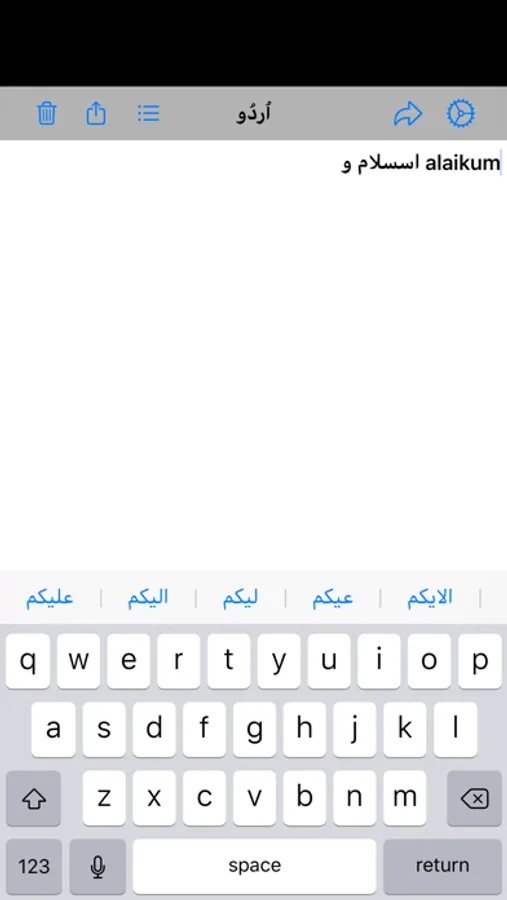 The resulting Urdu text can be posted directly on social media, email, or text.