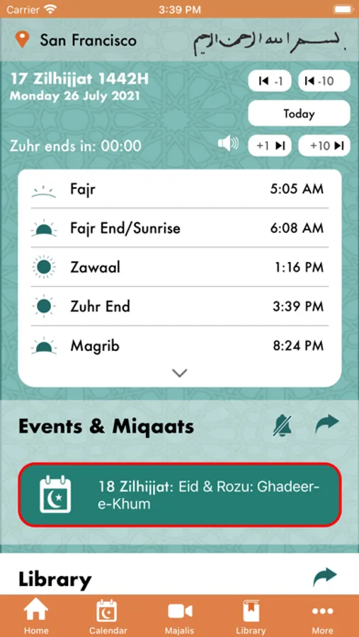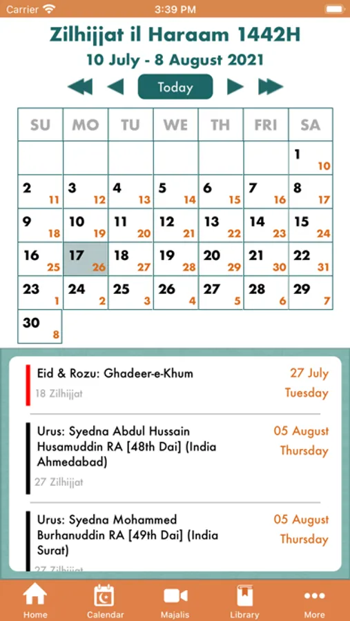 • Hijri calendar : Misri calendar with corresponding Gregorian calendar dates; complete list of all observable Miqaats (e.g. Lailatul Qadr) linked to Amal Details including wasila and waaz, niyyats, doas, qasidas, marsiya on FatemiDawat.com, notifications option