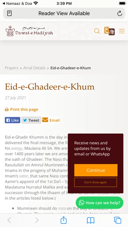 If you feel that the app is giving you wrong prayer times, it is most likely related to your settings. In most cases, enabling auto-settings is the safest way to obtain the most accurate prayer times. For users having issues, please try to uninstall and reinstall the app. If you continue to have problems, please contact us. For all questions, comments or feedback, we can be reached at info@fatemidawat.com or over WhatsApp +917867865354, or by using the 'Connect' tab from within the app.
