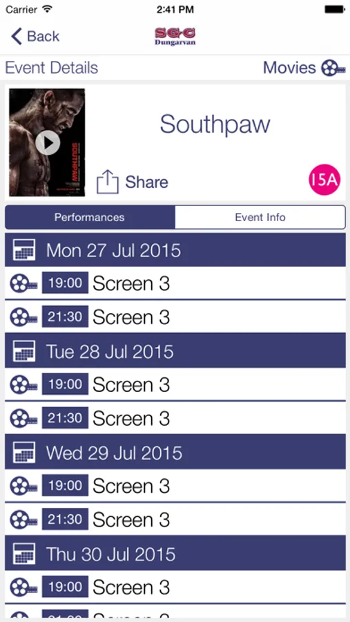 Share events, and bookings on social networks to see who wants to join you in seeing the latest films at SGC Dungarvan