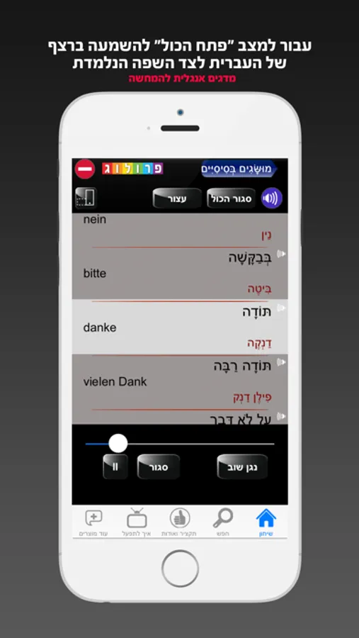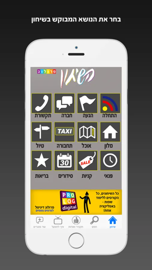 מהו שיחון שימושי?... שיחון שבו ניתן בקלות לאתר את המילה או את המשפט הרצוי, להגות אותו בקלות בעזרת הכיתוב הלועזי או התעתיק העברי המצורף, וברוב המקרים גם להאזין לקריינות שלו. וזה מהותו של השיחון הזה! שיחון זה מבית פרולוג מוציאים לאור הינו גרסת האפליקציה של סדרת השיחון הנמכרת והטובה מסוגה לדוברי עברית, ועכשיו עם חידושים ומאפיינים ייחודיים ההופכים את קלות הלימוד, הביטוי והאיתור לנוחים ולמהנים עוד יותר! ... - ובנגיעה על שורת משפטים מובחרים ייקרא ויושמע לך תרגומו בקריינות רהוטה :-).זאת ועוד:■ מצב נגן הכול - הקראה ברצף של המילים והמשפטים בזה אחר זה;■ סיבוב המכשיר למצב אופקי - מאפשר לך לראות ולהראות בהגדלה את המשפט הרצוי - וגם: דפדוף בנגיעה או בהחלקה והשמעה חוזרת;■ כנהוג בכל שיחוני פרולוג - צורפו לתרגום גם תעתיק עברי באותיות אדומות (כתיבת השפה הלועזית באותיות עבריות) - במטרה להקל עליך בהגיית המשפט המבוקש;■ אפשרות חיפוש ואיתור משפט מסוים בהתאם למילת מפתח;■ מדריך למשתמש מפורט הכולל גם תקציר על אודות מאפייני השפה הנלמדת, הדקדוק וכללי ההגייה.שיחון זה כולל בין 10 ל-12 נושאים, ביניהם בין היתר: מושגים בסיסיים, הגעה, חברים, אנשים ועסקים, תקשורת, מחשבים וטלפון, בית מלון, מסעדה ואוכל, תחבורה, טיול וטבע, בילויים וספורט, קניות, סידורים, בריאות ועזרה ראשונה.כל נושא מחולק למספר תתי-נושאים שקצרה היריעה מלהכילם בתקציר זה. מספר תת-נושאים בעלי חשיבות ושכיחות נמוכה יותר לא הוקראו בשל מגבלת מקום והם מסומנים בתוכן העניינים בסימן הַשתק.אם אפליקציה זו היא בגרסת חינם: ניתן להתרשם ממספר מצומצם של נושאים ומשפטים המובאים כהמחשה וכדוגמה, וקרוב לוודאי שניתן לשדרג מתוכה לגרסה המלאה בכדי שניתן יהיה ליהנות מתוכן השיחון המלא.לימוד ושימוש מהנה.פרולוג מוציאים לאור