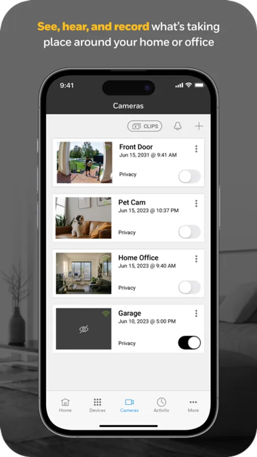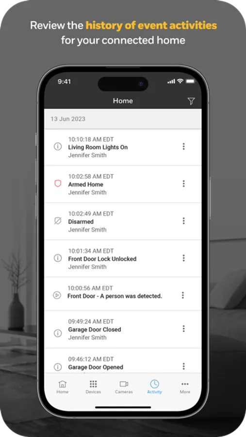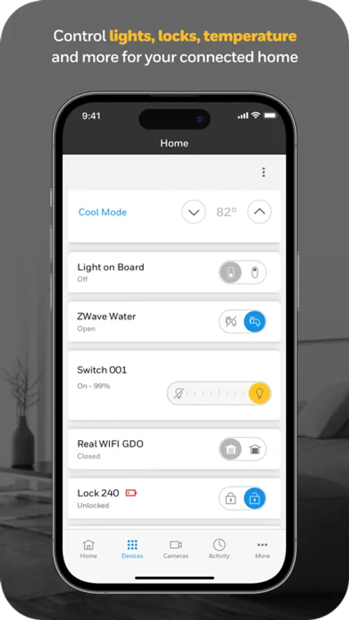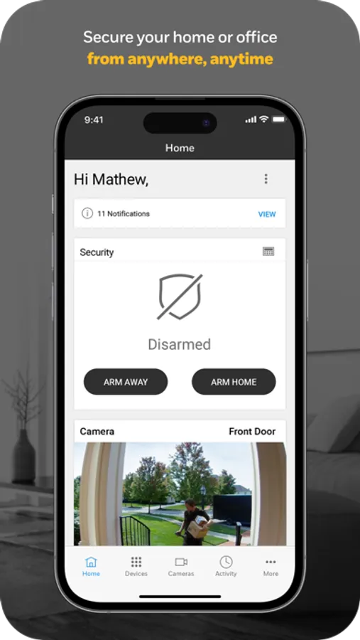 Keep an eye on your home or business while away with mobile management of your security system and compatible smart devices. Arm or disarm your security system, view high-quality live and recorded video, answer the door and greet visitors, unlock/lock doors, turn lights off/on, adjust thermostat temperature, even open or close garage doors from wherever you are. Customize your home with a series of automated actions. Create an exit routine that adjusts the temperature and locks the doors. Or, run a bedtime routine that checks the garage door status, turns on outdoor lights and arms the alarm.
