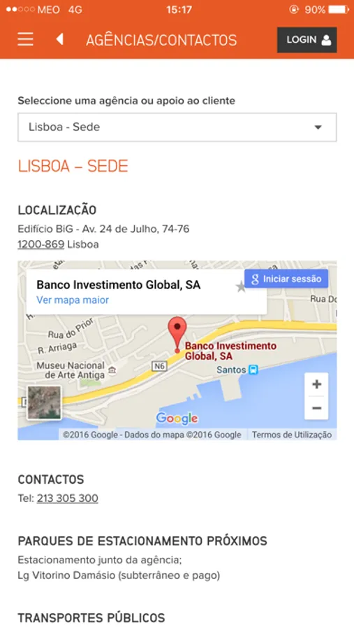 As operações e funcionalidades actualmente disponíveis na app BiG Mobile são as seguintes: