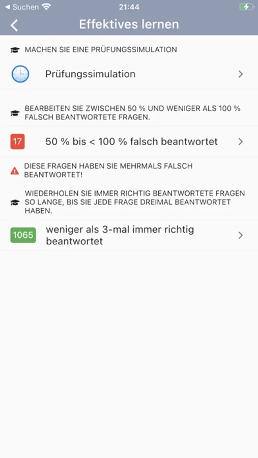 - Ausführliche Statistiken zeigen Ihnen Ihren Lernfortschritt.