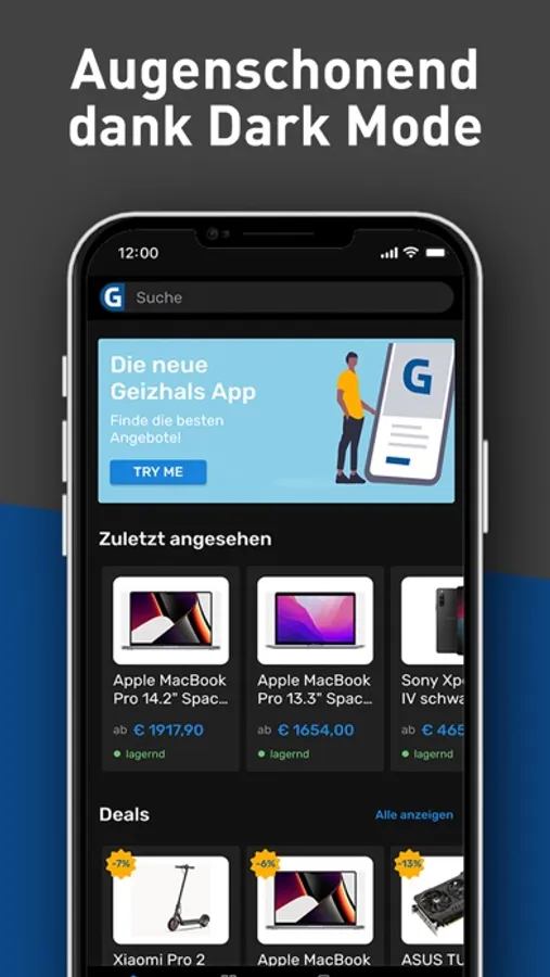Schone deine Augen UND deinen Akku - Aktiviere das dunkle Design in der Geizhals-App.