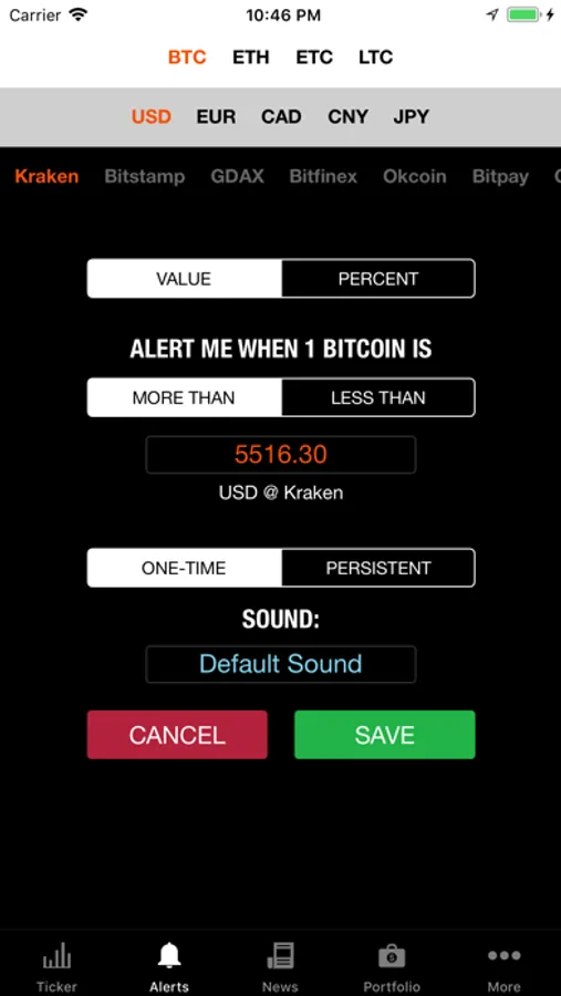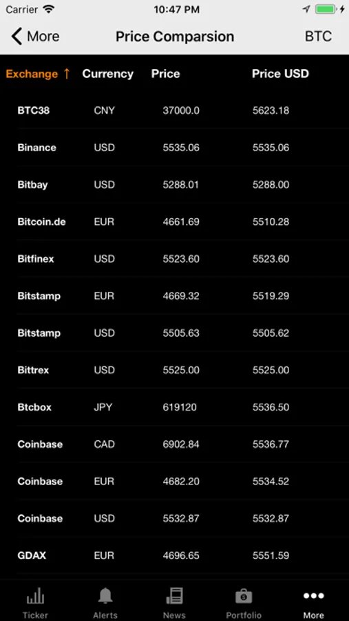 This app displays and monitors the current bitcoin (BTC) exchange rates.
