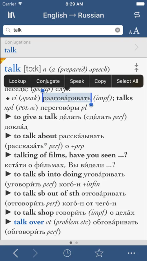 Over 90,000 translations • Conjugates thousands of Russian and English verbs • Hundreds of usage notes and examples • No internet connection required