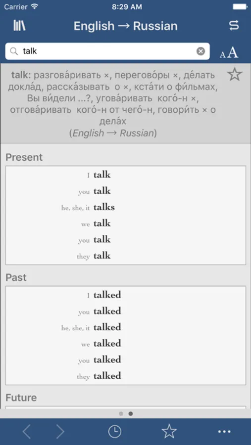 • Conjugations for thousands of Russian and English verbs