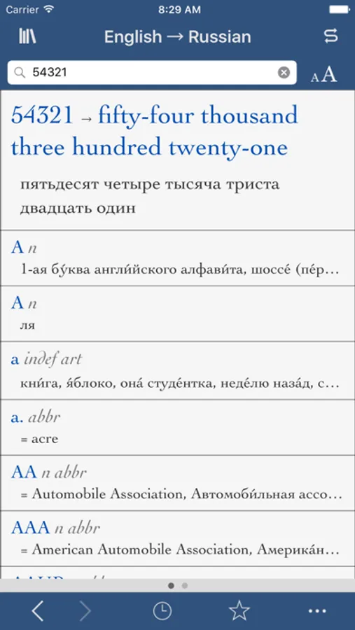 Carry a dependable Russian and English reference everywhere you go with the Collins Pro Russian-English Translation Dictionary. This app contains dictionary data from HarperCollins in our popular Ultralingua interface. Use our verb conjugation tool to find complete conjugations of thousands of verbs in all standard forms, and the number translator to convert numerals into Russian or English text instantly.