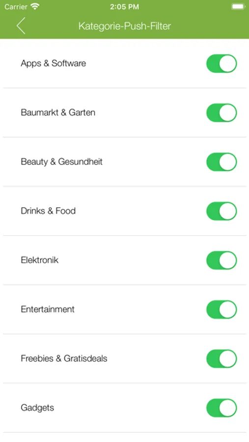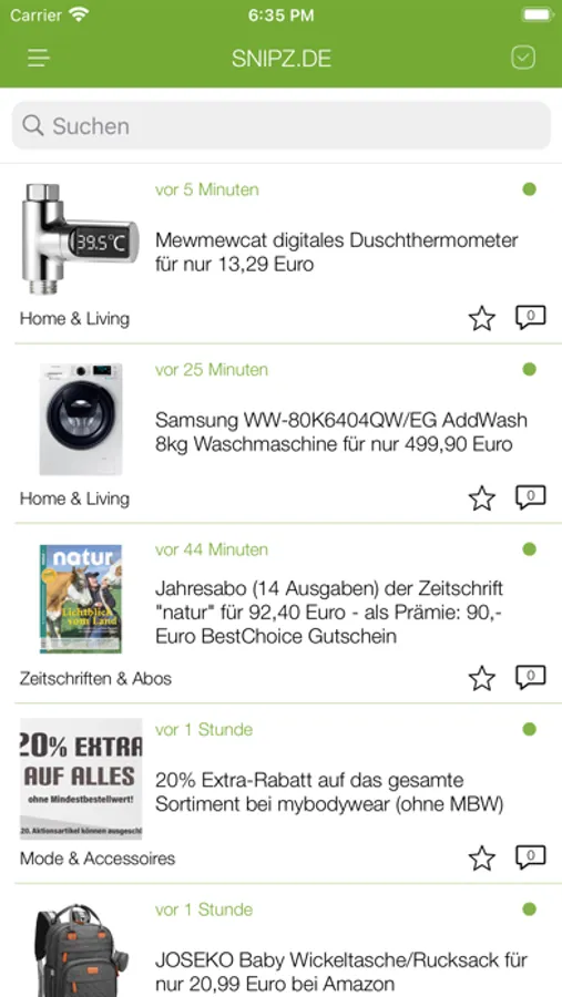Du kannst dich zum Beispiel über Technik- und HiFi-Angebote von Amazon, Media Markt und Saturn per Push benachrichtigen lassen, und Mode Deals von Zalando oder H&M nur auf der App-Startseite anzeigen.