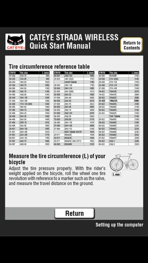 This Quick Start provides information on how to prepare the CATEYE Strada Wireless with dedicated chapters such as Setting up the computer, How to install the sensor.