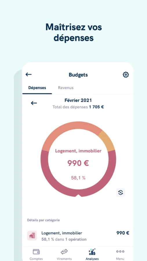 • Classement automatique de toutes vos opérations dans des catégories personnalisables (carburant, alimentation, salaire…).