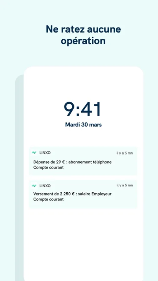 Recevez des notifications quand vous recevez votre salaire, pour vos dépenses cartes élevées, vos frais bancaires, ou en cas d’actualité importante sur vos comptes.
