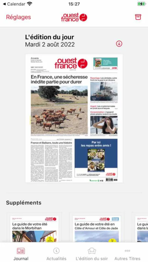 Le journal numérique Ouest-France c'est 40 éditions disponibles dès 5h, avec pour les abonnés, la possibilité d'en télécharger 2 par jour en plus de l’édition France. Chaque matin, consultez votre édition préférée et faites le point sur l’actualité du jour, du monde à votre commune, avec les analyses et les décryptages de nos journalistes.