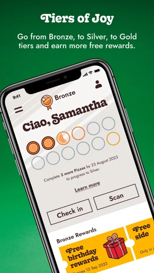 Earn Pizza Stamps every time you eat with PizzaExpress, and you’ll unlock new tiers with more free rewards for you to enjoy again and again.