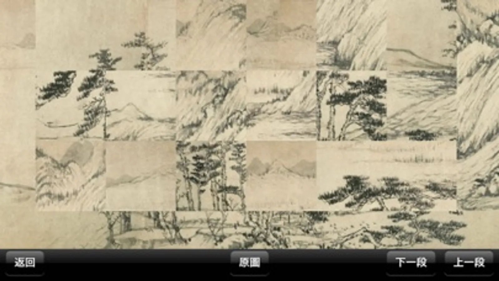 This app has prepared a high definition copy of the reunioned ''Dwelling in the Fuchun Mountains'', together with a puzzle game based on it.
