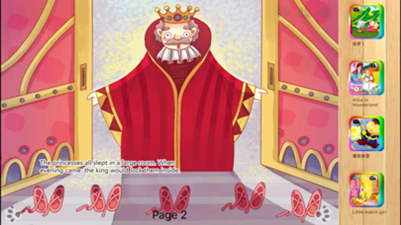 ►Stunning animation effect on each page.The dancing shoes on the floor, the beautiful princess and clever soldiers and etc. special effects. Make the person at the scene.