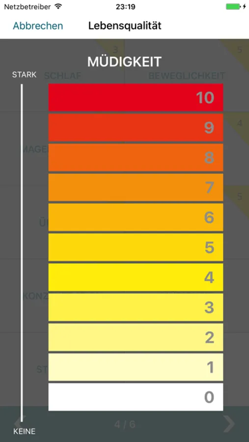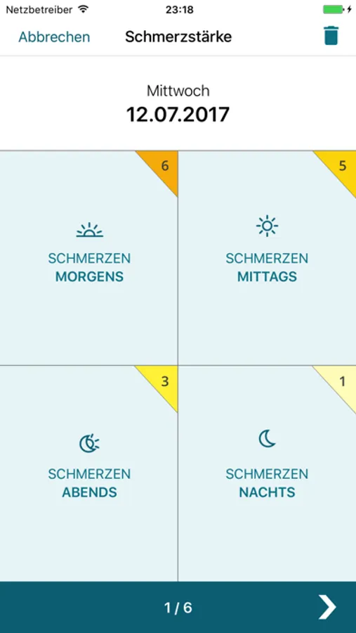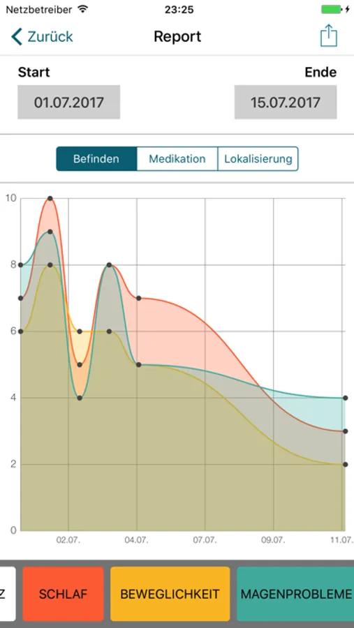 • Dokumentation Ihrer Schmerzstärke nach Tageszeit