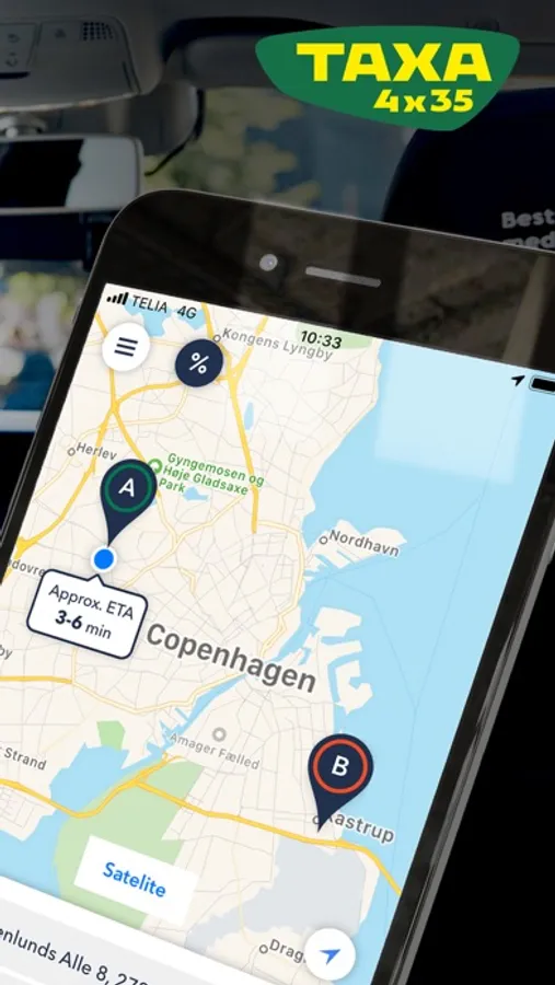 Easy taxi booking in the greater capital area - including Copenhagen City, Copenhagen Airport (CPH), Roskilde, Hillerød and Fredensborg.
