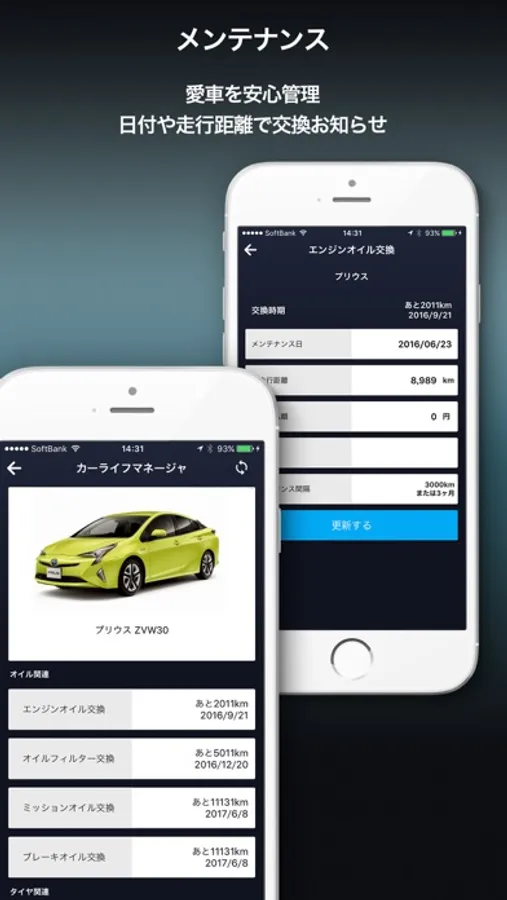 消耗品、免許など交換・更新時期情報を管理、お知らせする機能です。愛車を最高のコンディションに保ち、メンテナンス時期を逃しません。適切なタイミングでのメンテナンスは、愛車を快適に永く乗り続けられることにつながります。