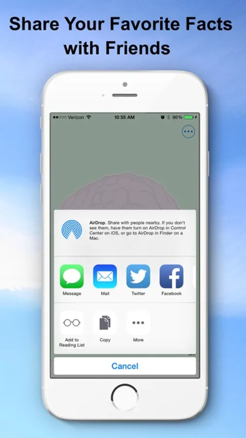 You'll even be able to save your favorite random facts in a list that you can recall, add to, or edit any time you like. Plus, if one random fact a day just isn't enough for you, you can see even more with just a touch of a button. Expand your knowledge, impress your friends--you'll love learning something fascinating, and maybe even surprising, every day. You can also share your knowledge with all your friends via Facebook, Twitter, or email with just a couple taps.