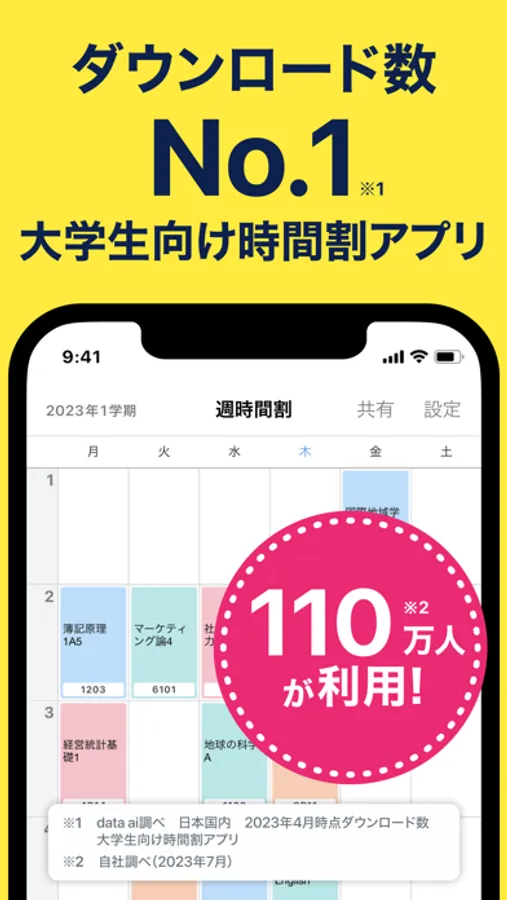 110万人以上が利用*している「すごい時間割」は大学生のための革新的な無料時間割アプリ。