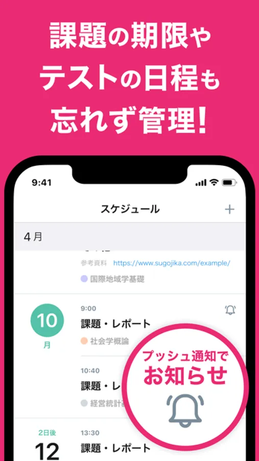 ・課題の期限やテストの日程も忘れず管理!プッシュ通知でお知らせ!