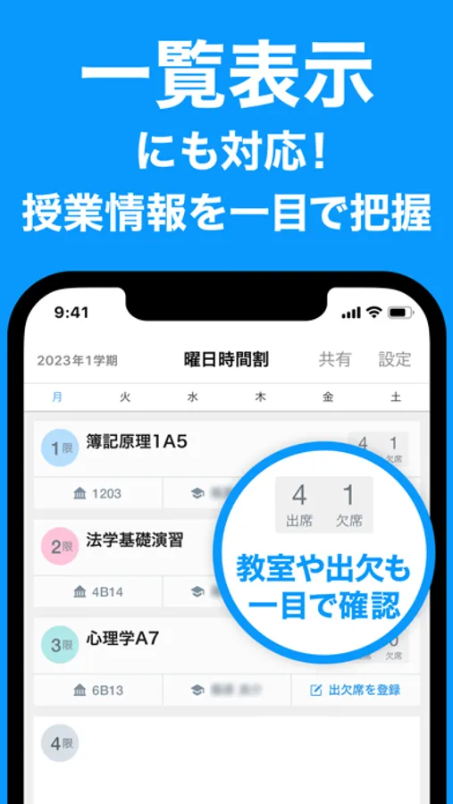 ・一覧表示にも対応!授業情報を一目で把握!