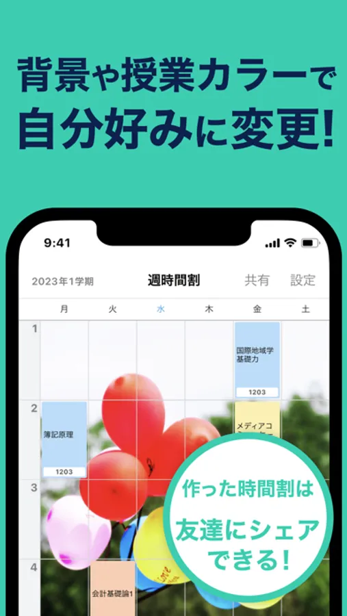 ・背景や授業カラーで自分だけの時間割に!
